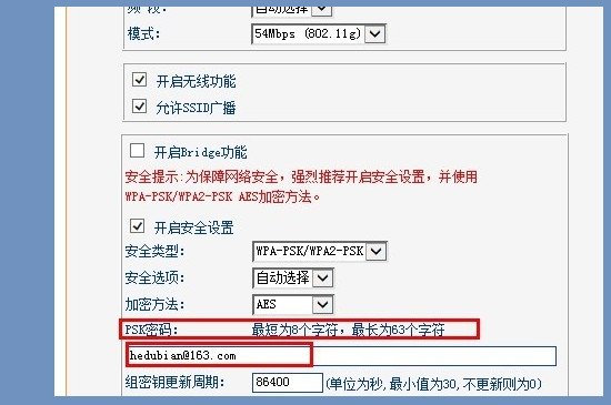 进入无线参数之后,点击“基本设置”并选择“PSK密码”,目前PSK栏目上的密码就是现在的无线宽带密码。把旧密码全部删掉之后输入新的密码就可以了,注意要超过8个字符,改好后点击保存就可以更改密码。