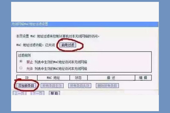 把陌生ID复制之后,启用无线网络MAC地址过滤设置,把刚才复制的ID粘贴进去并保存就可以了,这样就能把wifi连接的其他手机踢掉。