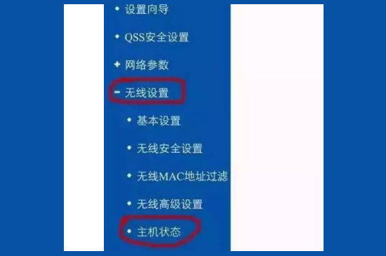 在页面左边找到“无线设置”,点开后继续选择“主机状态”,此时就可以看到所有连接在路由器内的设备,根据自己设备的名称来筛选不属于自己的设备。