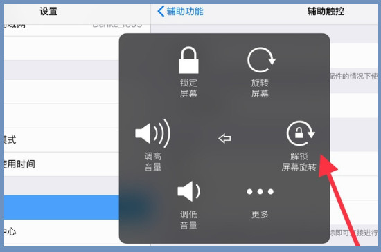 把辅助触控打开之后,此时平板界面就会出现一个白色的点,这个就是触控功能的按钮。点击小白点之后选择“设备”就可以打开平板内的设备设置,点击“解锁屏幕旋转”之后屏幕就可以跟着方向旋转。