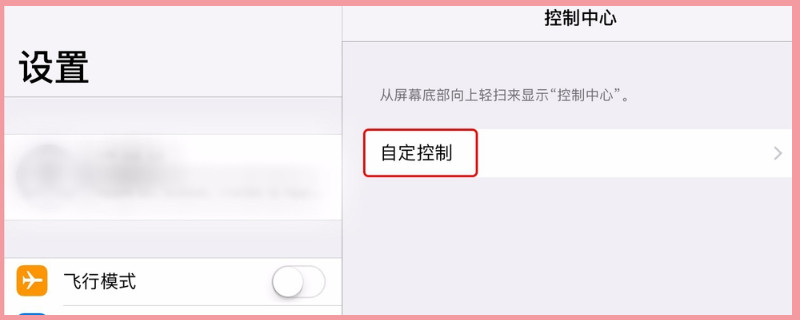 点击平板的设置图标之后进入平板设置界面,在左侧找到控制中心之后点击控制中心,打开其中的“自定控制”选项。