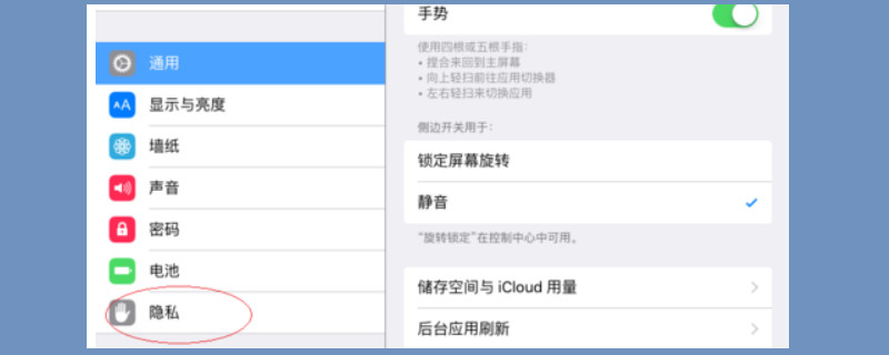 打开平板之后进入平板的设置界面,进入设置界面后可以看到很多关于平板的功能选项,下拉页面之后点击“隐私”选项。
