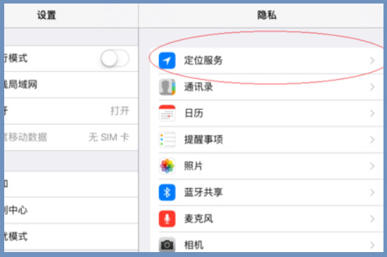 进入隐私设置之后,在设置功能里找到“定位服务”,一般定位服务都在第一行就可以看到。