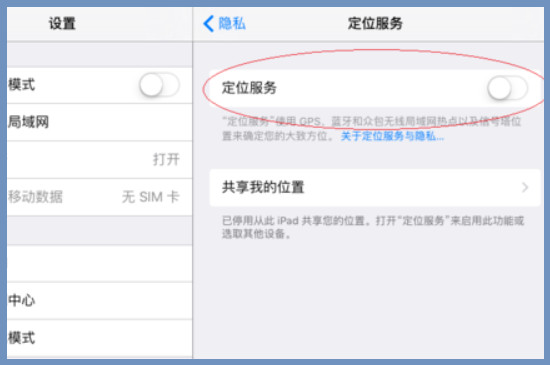 想要用平板开启定位,进入平板设置之后点击隐私设置,找到定位服务后点击右侧的控制按钮,把定位服务打开之后就可以看到下方有一个共享我的位置选项,点击右侧箭头就可以把平板的定位发送给别人。