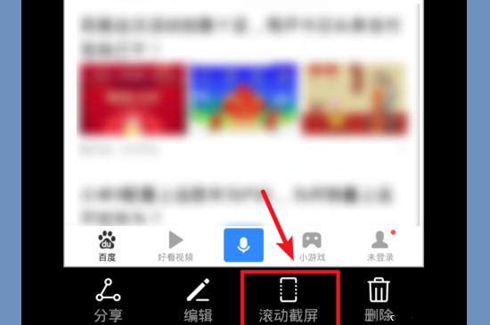截完屏之后左下角会有一个截屏的预览图片,点击预览窗口就可以进入刚刚截屏的内容,点击编辑框下方的“滚动截屏”之后页面就会开启自动滚动截屏。