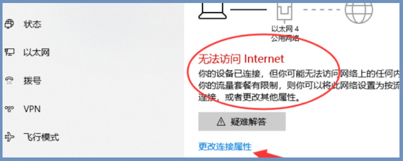 打开电脑后点击右下角网络选项,点击“打开网络和internet设置”之后进入电脑的网络设置里。在电脑网络共享中心的配置界面内,如果右边的图片显示IP配置异常,需要点击下方的“更改连接属性”。