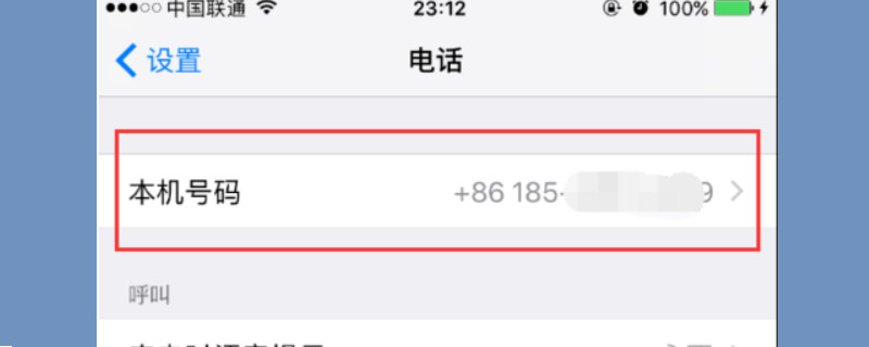 进入苹果手机的设置选项之后,进入页面一直下拉,找到底端的“电话”图标,点击电话之后就可以看到本机号码,本机号码内显示的就是目前使用的手机电话,在电话前还会显示目前电话所在的区号。