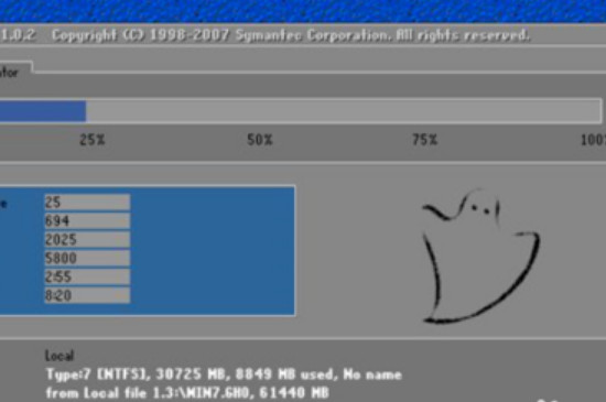 3、将电脑重启,开机启动项会出现Onekey Ghost选项,这时不用操作系统会默认选择Onekey Ghost进入安装程序,安装程序界面的进度条完成后电脑会自动重启,最后再手动安装电脑的驱动,略微调整系统配置即可。