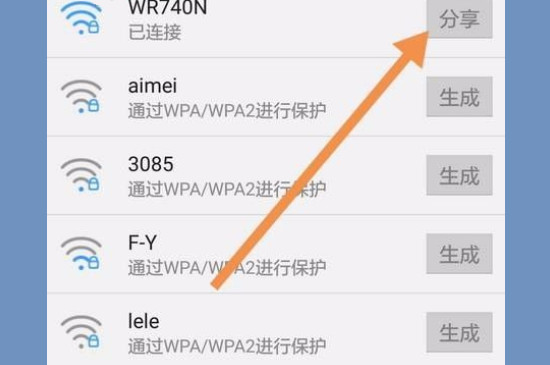 有些安卓手机连接wifi之后可以点击分享,将手机wifi设置打开之后,点击右边的菜单栏选择“分享wifi”,此时屏幕就会出现一个二维码。扫描二维码之后显示的字母S后面是wifi名称,字母P后面是wifi密码。