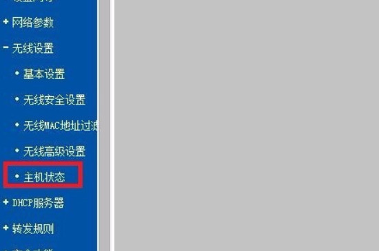进入登录主页之后,在左边的菜单栏内选择“无线设置”,点击“主机状态”后就可以查看目前路由器的连接状态。