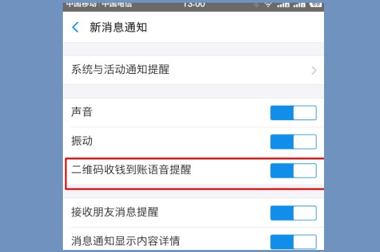 进入收钱到账语音提醒设置中后,可以看到目前支付宝的语音设置情况。找到“二维码收钱到账语音提醒”并打开就可以了,最后记得把手机音量调大一点,这样就可以听到语音通知。