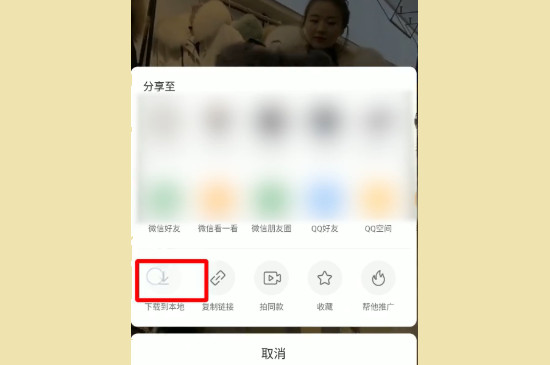 点击分享按钮之后,手机系统会自动弹出提示,可以选择分享视频的方法。点击“下载到本地”,确保手机内存够用之后,过几分钟之后快手的视频就会下载到手机里。