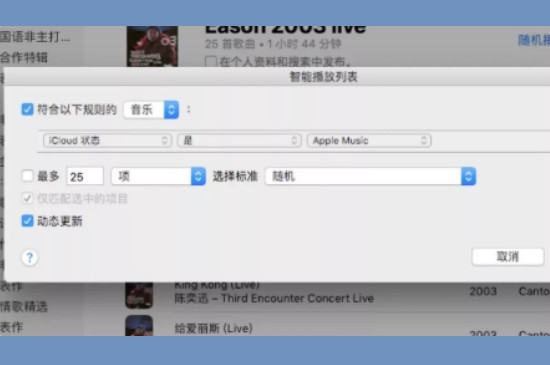 在使用ipod的时候,都会先登录和设置设备的苹果ID,此时将电脑上也下载iTunes之后登录相同的ID。打开iTunes之后在音乐播放列表中,选择“新建智能播放列表”,此时会弹出来一个窗口,根据窗口来选择对应的要求。