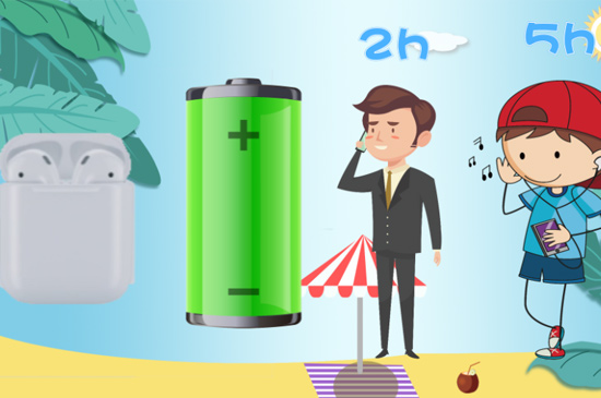 airpods1在100%电量情况下可持续听歌5小时,或者是保持2小时的通话。而airpods2在100%电量情况下,同样可持续听歌5小时,但是持续通话时间得到延长,可持续通话3小时,通话时间延长了50%。