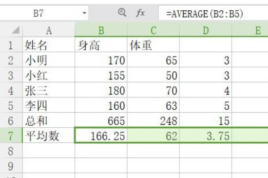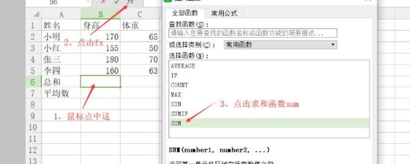 其中算法函数中,求和用的最多,将鼠标放在求和的单元格中,从表格栏插入fx函数,选择Sum即可求和;最小值和最大值也是相同用法,符号分别用Min、Max表示,平均函数的字母稍长,点击Average即可计算一行或者一列的平均值。