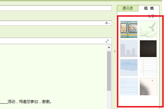 邀请函其实需要图片以及文字一起,不然外形就不够好看,选择了信纸之后可以看到右侧出现了很多信纸。根据邀请函的内容选择合适的背景颜色、图案,挑选好之后点击一下就可以改变信纸的背景了。