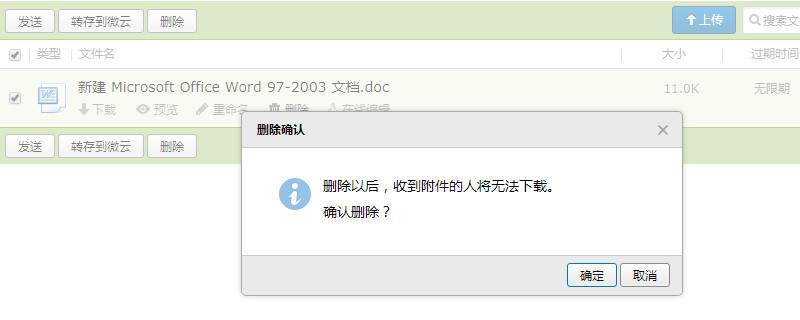 qq邮箱的中转站类似一种网络网盘,为了节约空间,一般内存比较小。因此删除了中转站的文件之后,别人是肯定不能再下载了,当你在中转站删除文件的时候,系统会提醒删除之后是不能下载的,因此删除时要慎重。