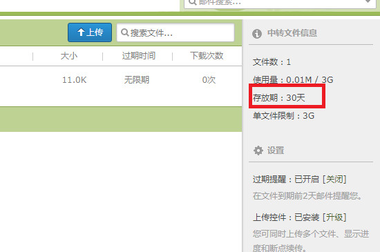 qq邮箱中的文件中转站只是一个缓存的地方,普通用户上传的文件只能保存30天,超过了30天系统会直接清理文件,到时候就不能恢复了。不过可以通过充值会员的方式,延长文件过期的时间,这样就可以保存文件。
