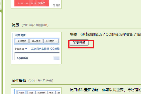 点击邮箱设置中最右边的一个“体验室”,这个体验室中有很多其他的程式,一直下拉找到简历选项,可以看到qq邮箱于2014年10月就已经推出了简历模式,直接点击“我要开通”就可以申请成功了。