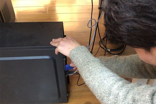 2、若连接线已插紧,则需要检查连接线是否出现损坏,可以更换一根新的连接线,若此时电脑屏幕有信号了,则说明是连接线的问题。
