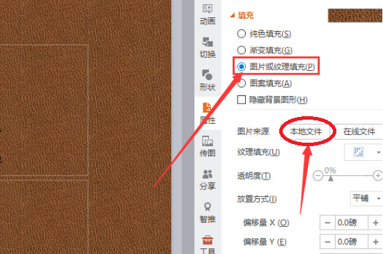 保存之后,可以打开要更改背景的ppt,这时候同样点击背景,使背景处于编辑状态。可以在本地文件中选择出刚才保存的背景图,然后勾选“图片或纹理填充”,选择完毕后就可以看见背景图已经改变了。