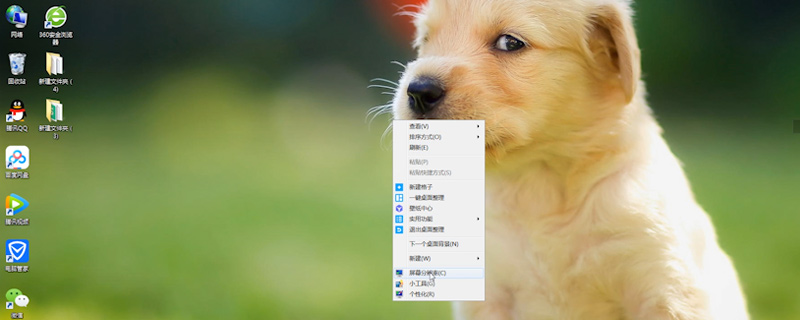 1、进入电脑桌面后,鼠标移至桌面空位处鼠标右键单击并点击屏幕分辨率。