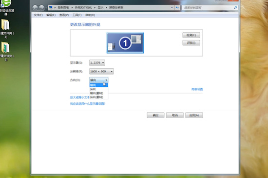 2、在分辨率栏和方向栏选择需要显示的屏幕分辨率大小和方向。