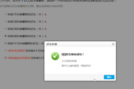 4、最后点击“恢复QQ好友”,勾选需要恢复的时间段内的好友,最后点击申请恢复即可。
