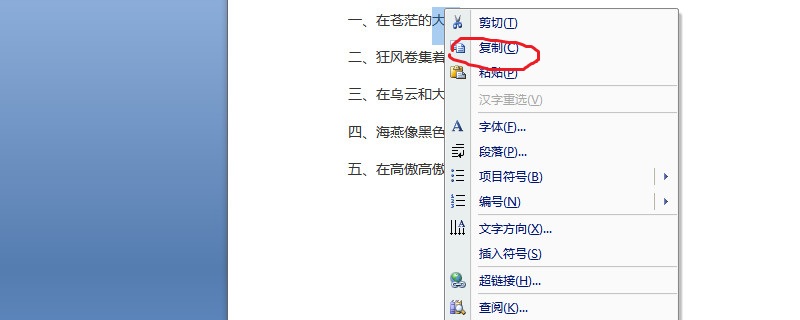 打开word文档,将想要删除重复项的文本显示出来。选中文本中想要删除的字符,选中后按快捷键“Ctrl+C”或者直接右键点击复制即可,然后在工具栏最上方点击“替换”,或者直接使用快捷键“Ctrl+H”就可以打开替换框。