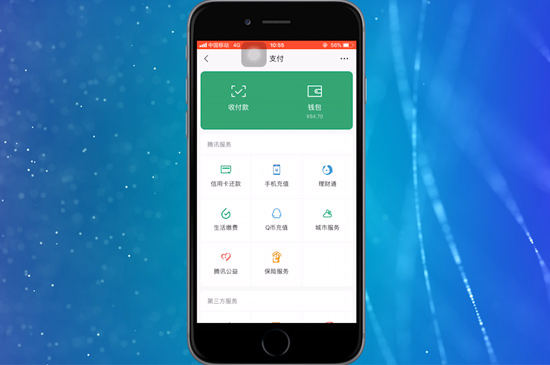 2、点击微信主界面右下角“我”选项,再点击“支付”。
