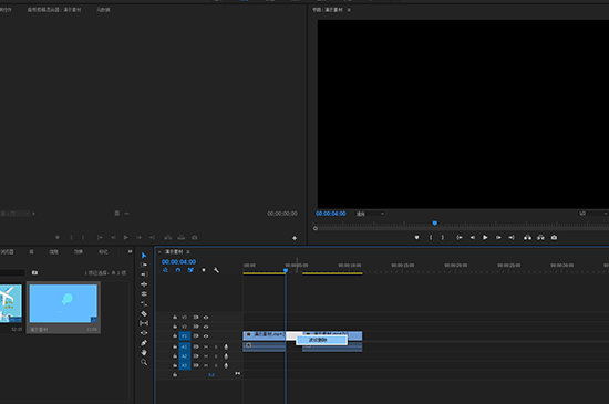 使用pr“剃刀”工具将视频裁剪后,右键点击裁剪后的空缺处,点击“波纹删除”,这样截开的视频就合并到一块了。