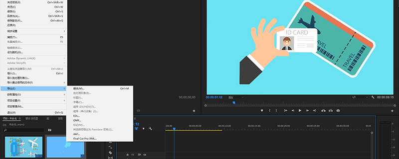 1. 在序列中编辑好视频后,点击“文件”-“导出”-“媒体”(快捷键“ctrl+m”)。