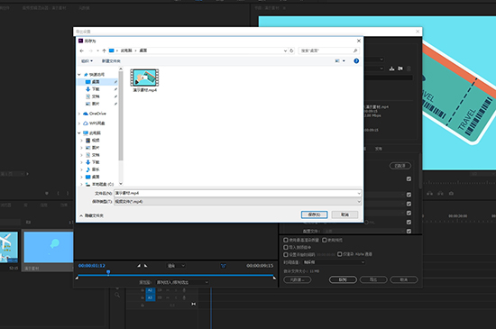 视频在pr中编辑好后,点击“文件”,选择“导出”至“媒体”,在弹出窗口中点击“输出名称”后面的文件名,储存位置选择桌面,点击“保存”,这样视频就保存到了桌面。