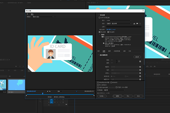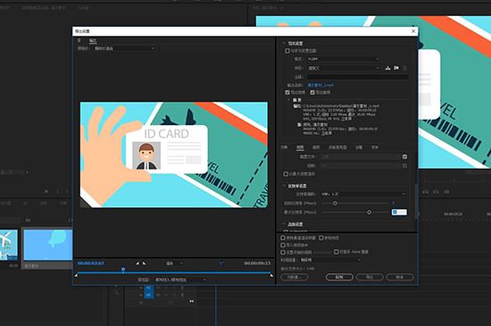 将处理好的素材,按快捷键CTRL+M,打开导出设置,选择格式一般为H.264,可以在视频选项下调整分辨率的大小,或用裁剪工具对视频进行裁剪,同时目