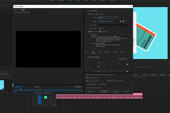 将处理好的素材,按快捷键CTRL+M,打开导出设置,选择格式一般为H.264,可以在视频选项下调整分辨率的大小,或用裁剪工具对视频进行裁剪,同时目