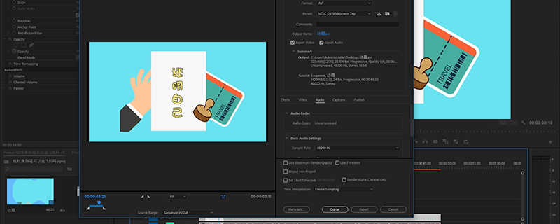 将处理好的素材,按快捷键CTRL+M,打开导出设置,选择格式一般为H.264,可以在视频选项下调整分辨率的大小,或用裁剪工具对视频进行裁剪,同时目