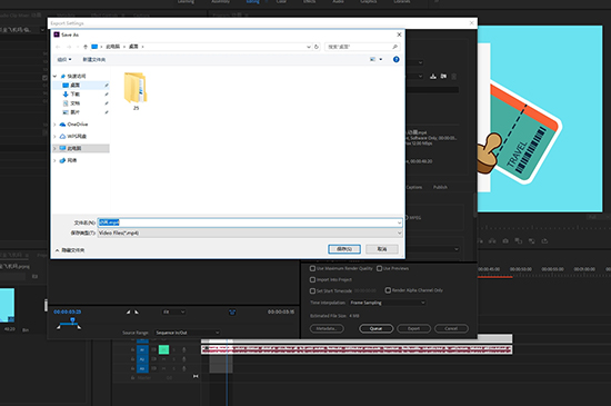 在Pr的导出界面,点击“输出名称”后面的文件名,在弹出窗口中选择存储位置,保存后点击“导出”就可以了。