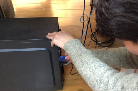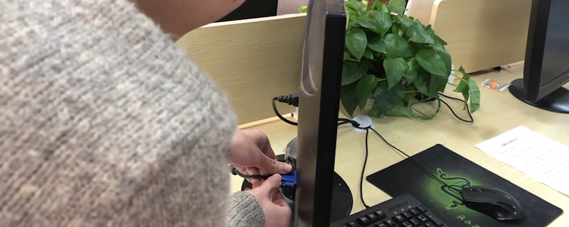 2、若连接线没有松动,需要再排查连接线是否出现问题,可以换另一根可以正常使用的连接线连接显示器,若显示器正常显示,则说明之前的连接线坏了。