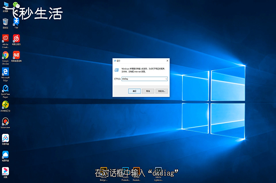 2. 在对话框中输入“dxdiag”,点击“确定”按钮进入“DirectX诊断工具”既电脑的硬件信息查看工具。