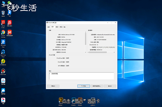 4. 在“DirectX诊断工具”中我们可以查看电脑硬件及系统的一些信息,选项卡分别可以查看电脑系统相关信息、显卡相关信息及声卡相关信息。在这里我们点击“显示”选项卡来查看显卡信息。