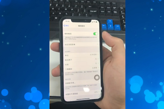 苹果x有两种方法,一种是组合键截图,同时按住音量增加键+电源键便可截图,也可使用AssistiveTouch功能进行截,进入设置找到通用,选择辅助功能,开启“Assistive Touch”功能,返回桌面,点击小圆点,依次选择设备、“更多”便能截图。