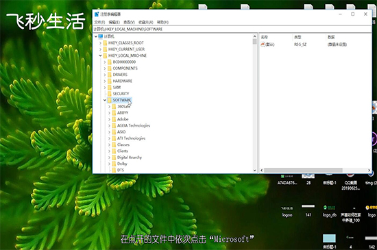 找到“SOFTWARE”文件并点开,在点开的文件中依次点击“Microsoft”、“Windows”、“CurrentVersion”、“Explorer”、“DeskTop”找到并点击“NameSpace”文件。