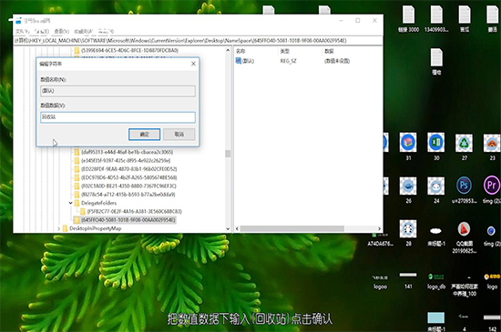 右键点击默认再点击修改,把数值数据下输入{回收站}点击确认,重启电脑即可。