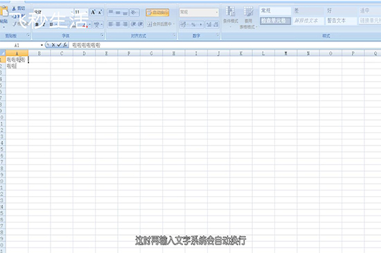 点击对齐,勾选对齐中的自动换行,这时再输入文字系统会自动换行。