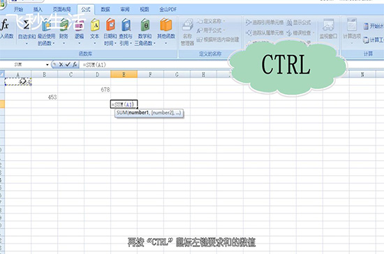 3、当数值不在同一个序列时,可以在求和的单元格点击,选中自动求和,再按“CTRL”鼠标左键选择要求和的数值按回车就完成了。