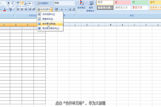 选择最上方的单元格,点击“合并单元格”,作为大标题。还可以改变标题的字体设置和对齐方式,其余位置同理。
