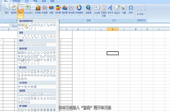 还可以使用“插入”菜单下的“形状”,给单元格插入“直线”隔开单元格。