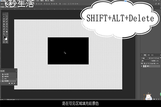 按“SHIFT+ALT+Delete”是在可见区域填充前景色。