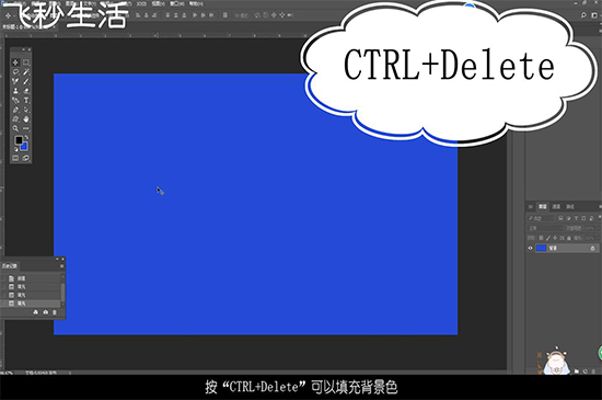 设置一个背景色,按“CTRL+Delete”可以填充背景色,按“SHIFT+CTRL+Delete”是在可见区域填充背景色。