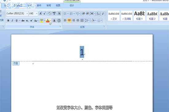 以“页面顶端”为例,选择一个类型确认,框选页码,可以对页码的字体进行设置。
